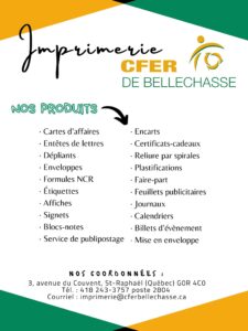Contactez nous pour une soumission, imprimerie@cferbellechasse.ca