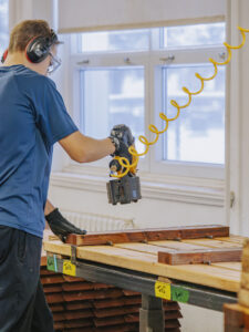 Clouez la table à l’aide d’un cloueuse à charpente.